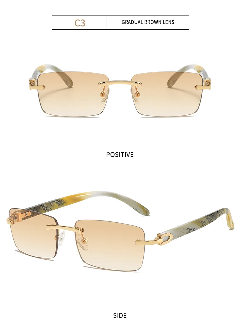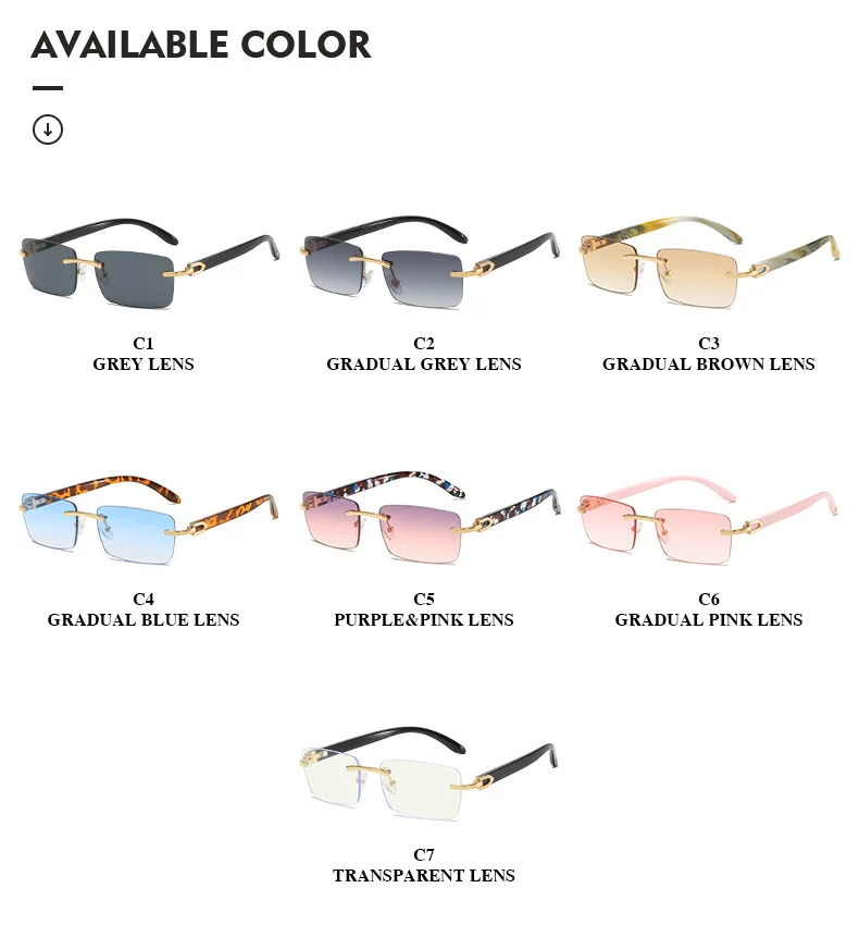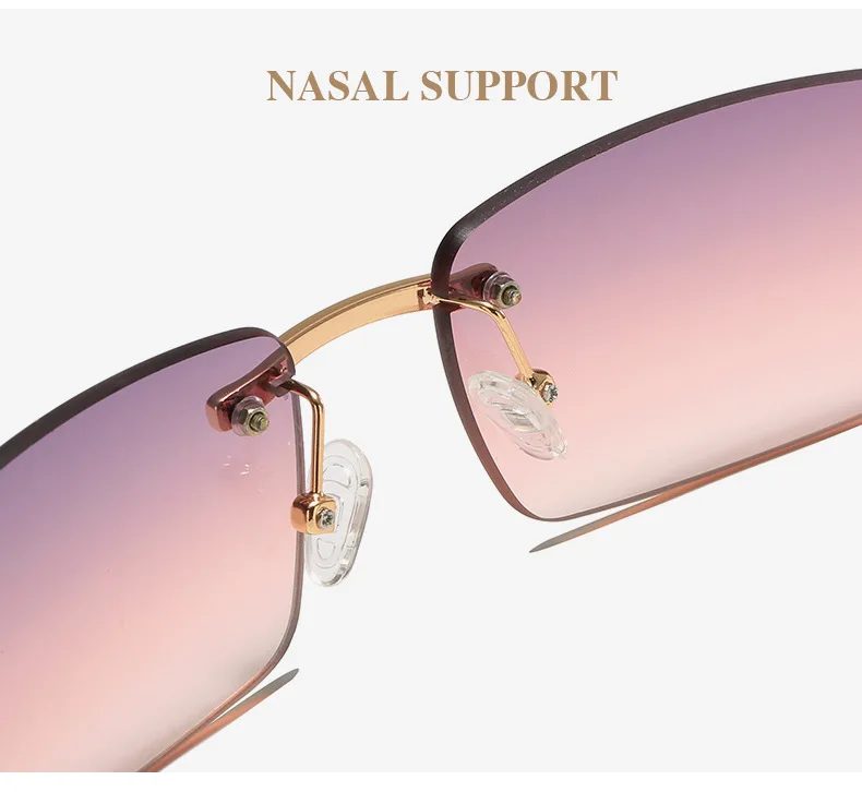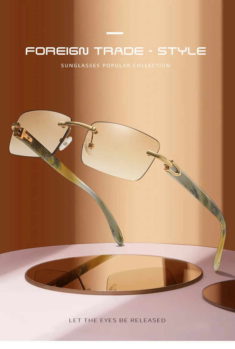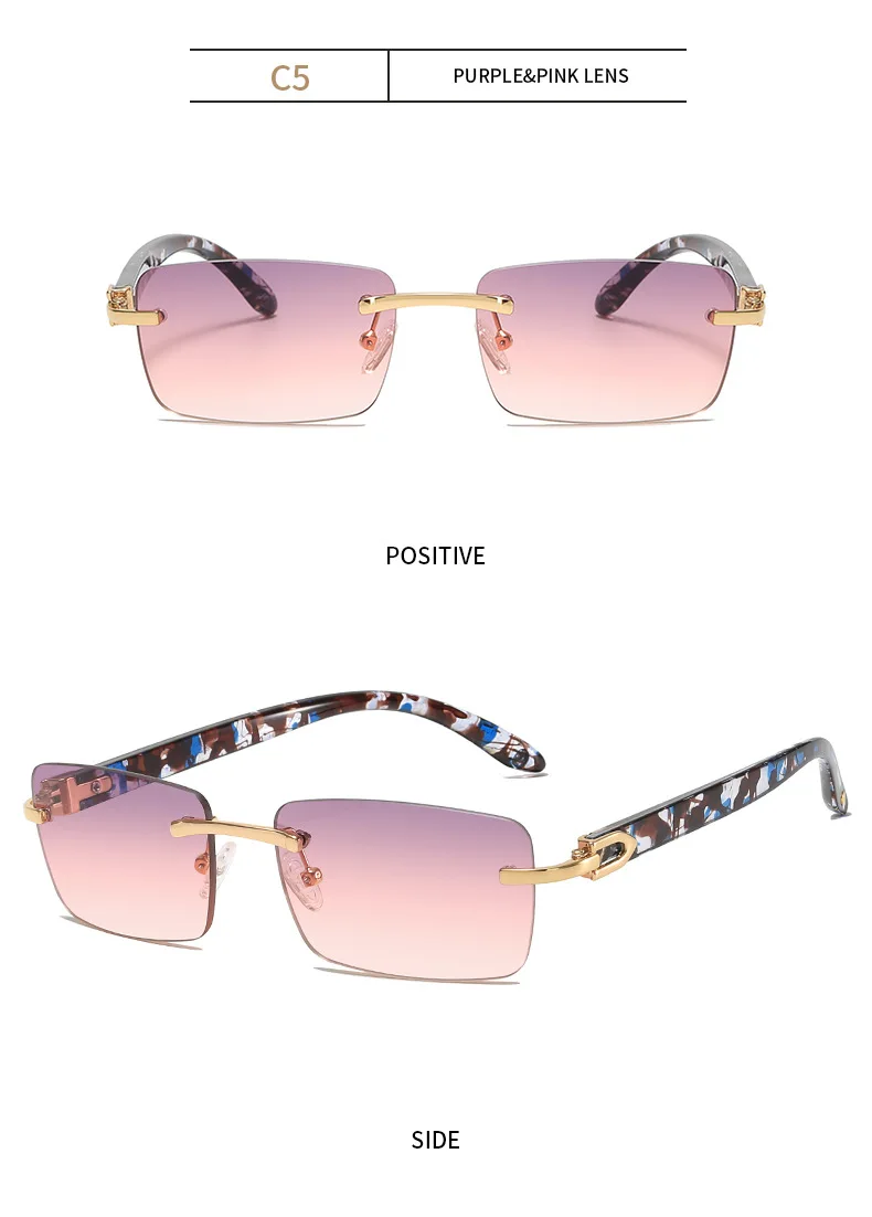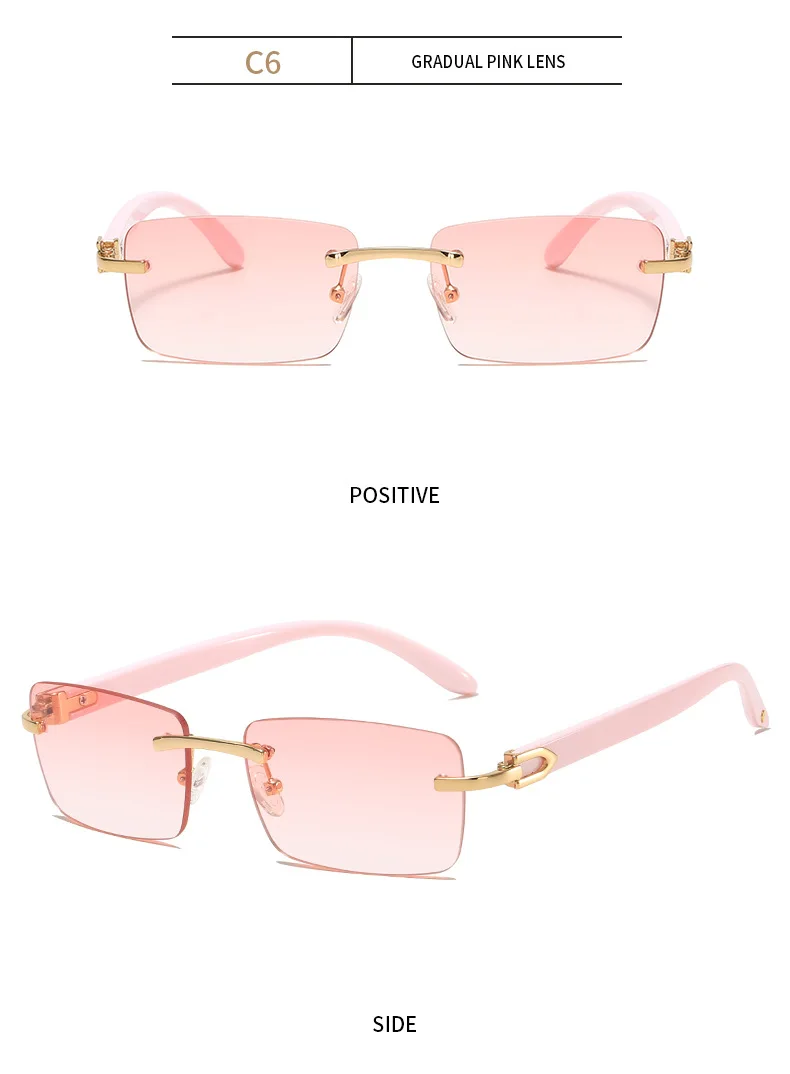2024 New square rimless sunglasses Fashion cut edge men's glasses Jelly coloured women's sunglasses Fashion clothing Street beat